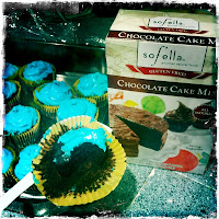 Today I had a baby shower to attend and I made the dessert, so I made Sof'ella cupcakes with Cream Cheese Frosting. I used the exact directions on the box, which you need to follow in order, exactly. I then made frosting, the recipe to follow, using yellow cupcake cups and making the frosting blue. There are so many ways to change this for fun or taste, but always start with Sof'ella when making chocolate cake!